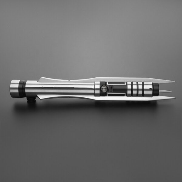 The Darth Revan Jedi Lightsaber is a striking replica of the weapon wielded by Revan during his time as a Jedi Knight in the Star Wars universe. This hilt features a sleek, silver-toned aluminium body with black accents, creating a refined yet battle-ready appearance. The hilt’s contoured design ensures a comfortable and secure grip, while the three emitter claws add an aggressive aesthetic that blends Jedi elegance with a warrior’s practicality.