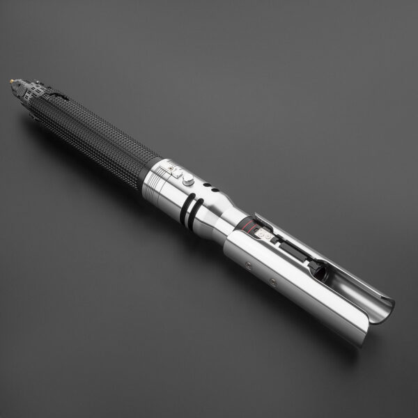 Equipped with RGB-X electronics, this lightsaber offers an immersive duelling experience with a range of features. The baselit blade provides vibrant illumination with multiple colour options, though it is best suited for dark environments as its light comes solely from the emitter. Designed for heavy duelling, the durable construction ensures it can withstand intense combat. The saber includes 16 pre-installed sound fonts, smooth swing motion detection, flash-on-clash effects, and gesture-based controls. While already equipped with such great features, it also supports Bluetooth connectivity, allowing users to access settings more easily and upload extra sound fonts via the “XenoConfigurator” app on iOS and Android.