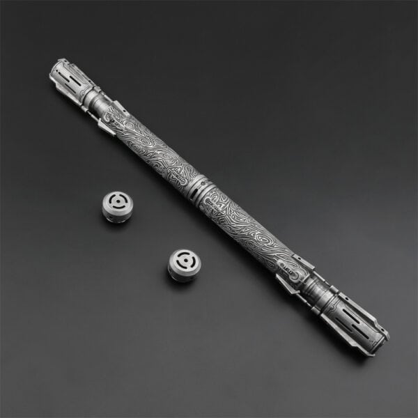 The Satele Shan Double-Bladed Lightsaber – SNV4 PRO is a masterfully crafted replica of the weapon wielded by the esteemed Jedi Grand Master, Satele Shan. The hilt features an intricate straight spiral design, providing both aesthetic appeal and a comfortable grip. This versatile saber can be used as a double-bladed weapon or separated into two single-bladed lightsabers, each emitting a vibrant blue blade.