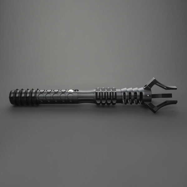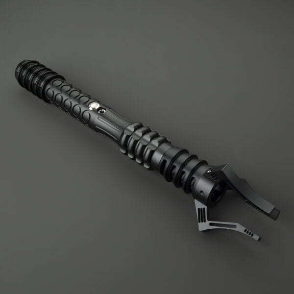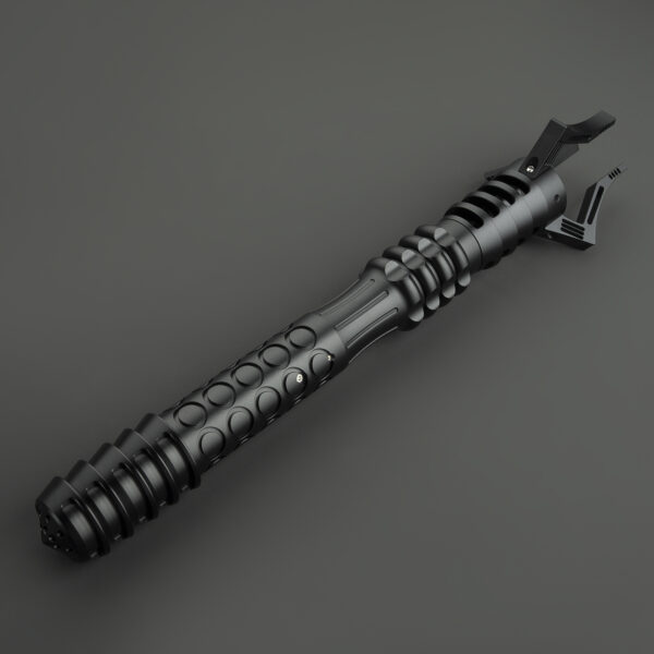 The Crusher Lightsaber is a bold and unique design, crafted for those who seek a weapon that blends aesthetics with functionality. Unlike traditional replica sabers, this exclusive model stands out with its futuristic and aggressive styling. The hilt, available in both silver and black, features a rugged, perforated grip for superior handling and control. Its ergonomic contours ensure comfort during extended duelling sessions, while the emitter is reinforced with an angular guard, adding to its imposing presence.
