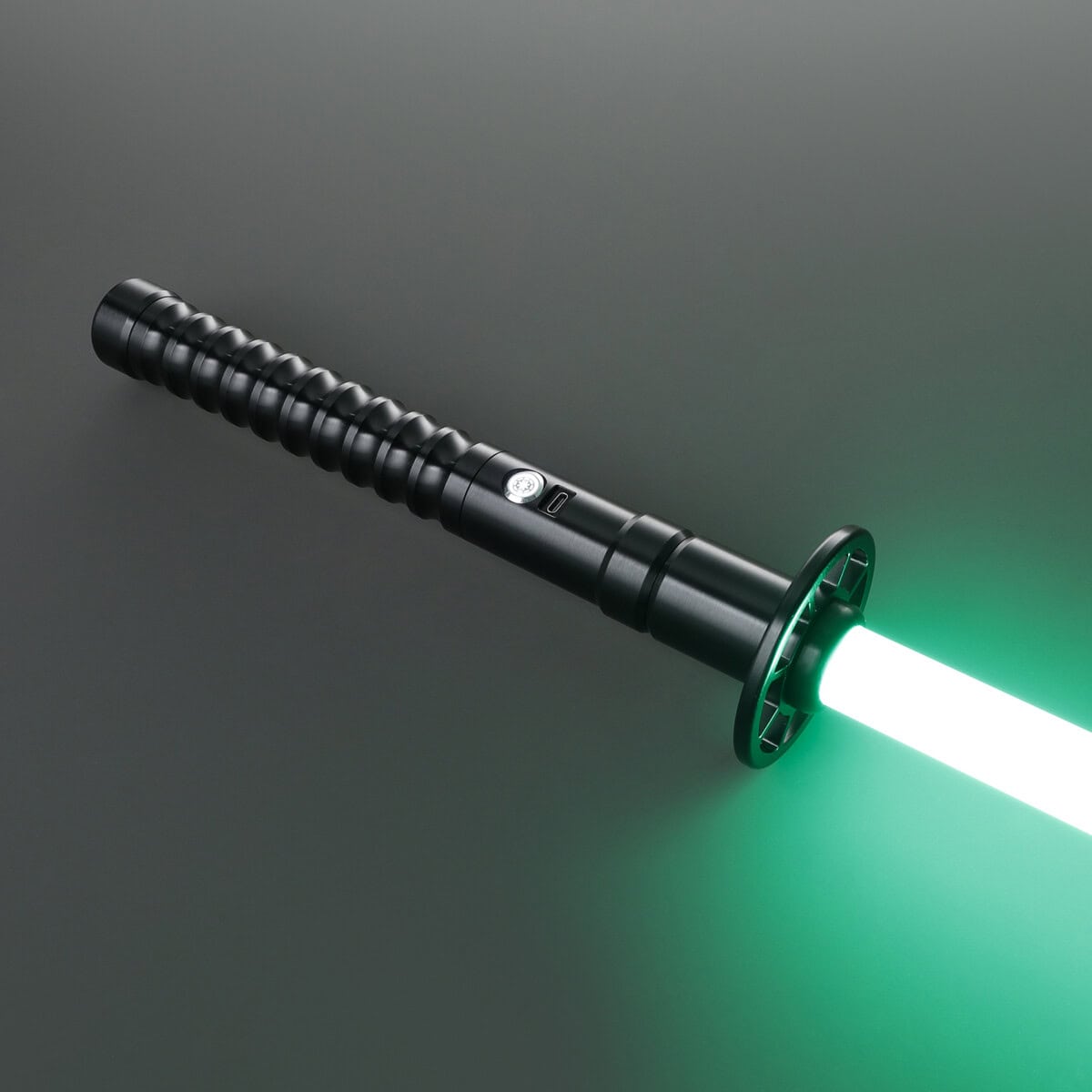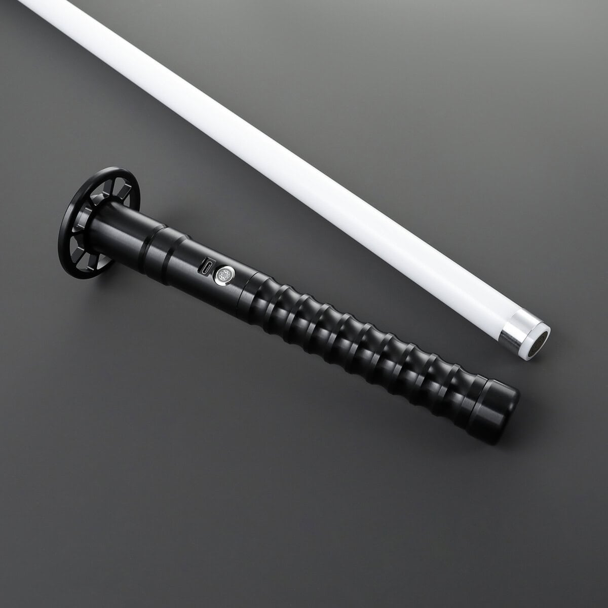 The Black Hardcore Katana Lightsaber is a groundbreaking design, setting itself apart as the only Xenopixel V3 lightsaber with Neopixel blade built for heavy dueling. With a fusion of traditional katana aesthetics and modern saber craftsmanship, this model offers a sleek, battle-ready hilt that delivers both elegance and resilience. The design ensures a firm grip, allowing for precision and control, while the emitter features a self-tightening blade mechanism, eliminating the need for additional screws. This innovative feature, combined with an extra protective layer at the tip of the Neopixel blade, makes it the most durable combat-ready Xenopixel V3 saber on the market.