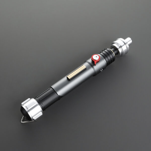 The Ezra Bridger V2 Lightsaber is a bold and refined weapon, designed for those who seek a balance of tradition and modern craftsmanship. The hilt features a striking combination of black and silver, with an ergonomic grip that ensures comfort and precision. The emitter showcases a classic profile with a polished silver finish, contrasting beautifully with the darker hilt. The red activation switch and unique side detailing add an extra layer of character, making this saber stand out as a versatile and stylish weapon.