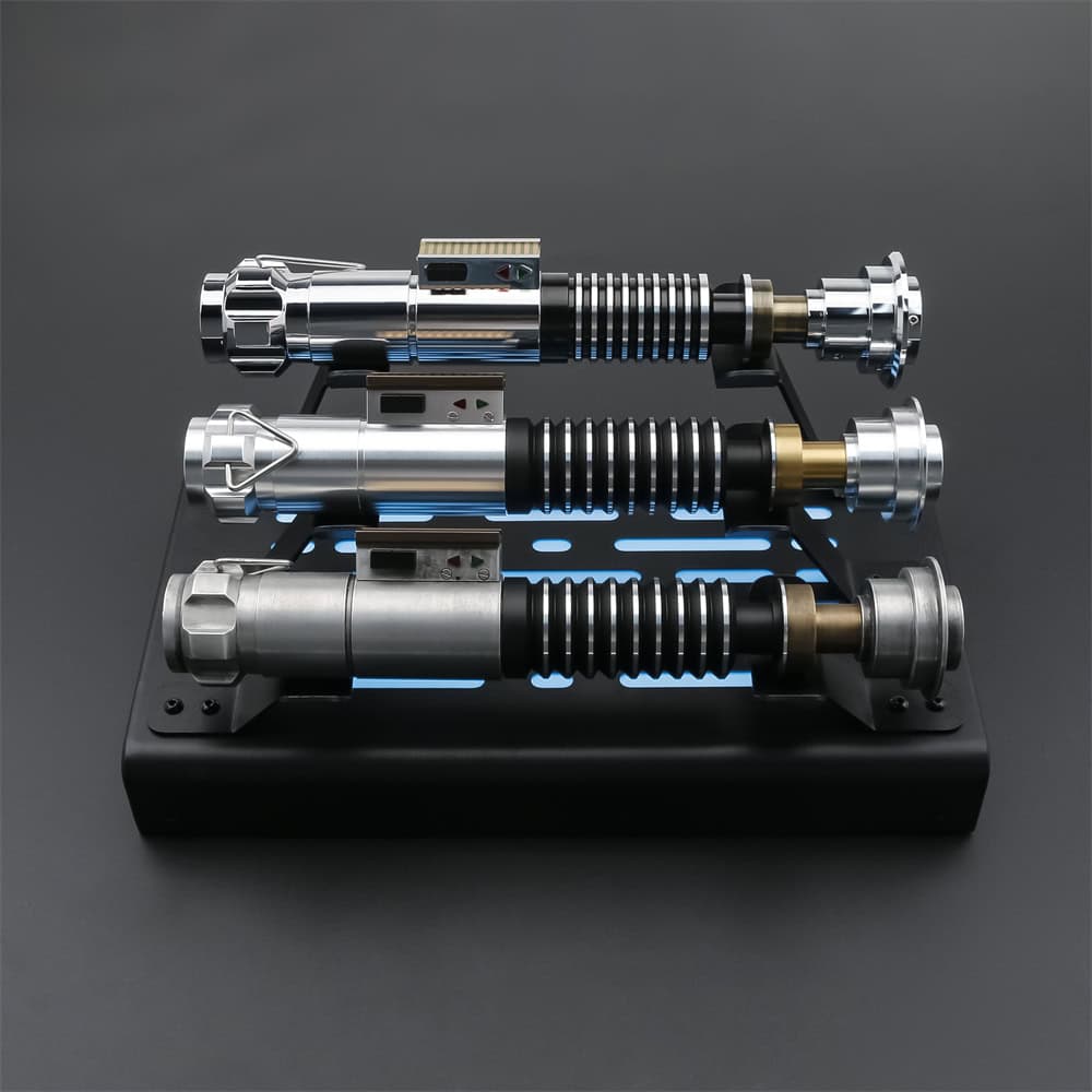 The stand runs on a built-in rechargeable battery, eliminating the hassle of frequent replacements and giving you a cleaner setup without external cables. With precision-welded arms designed to cradle your lightsaber hilts gently but securely, it accommodates most hilt sizes across various brands. Whether you’re displaying legacy replicas or fan-favorite originals, this stand brings out their brilliance with both stability and illumination.