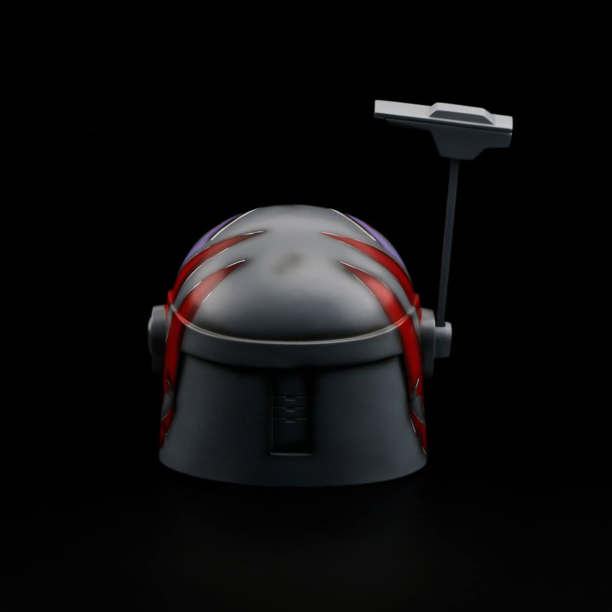 Worn by Sabine Wren, an artist, explosives expert, and freedom fighter, this helmet represents not just Mandalorian heritage but also individuality, defiance, and creativity. With its striking red, gray, and black color scheme, accented with custom artistic touches, it embodies Sabine’s fearless and expressive nature.